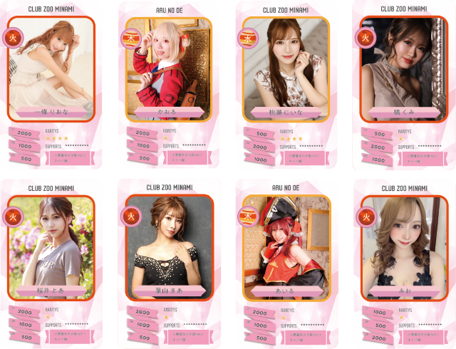 販売方法は5枚入り1パック(キャスト×4枚 アイテム×1枚)です。 - 新しく入店したキャストのカードを刷ってほしい。