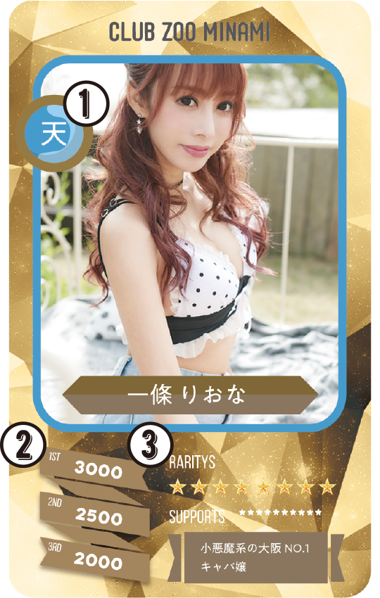 - 年に数回、新カードを作成します。その決められた期間内に、・売り上げ・出勤日数・指名本数・同伴本数などを考慮し、★2.3.4…と上がっていきます。