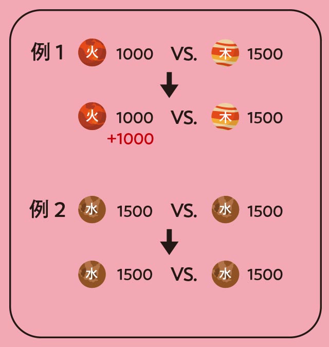 - カードを表向きにした時、タイプに優劣がなく、同じパワーだったときはどちらが先にサポートしますか?