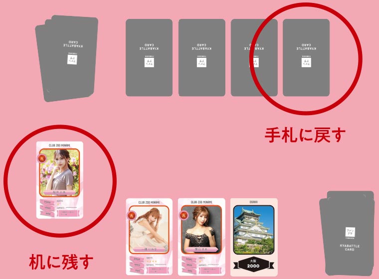 ※勝者は机にカードを置き、敗者は手札に戻す。